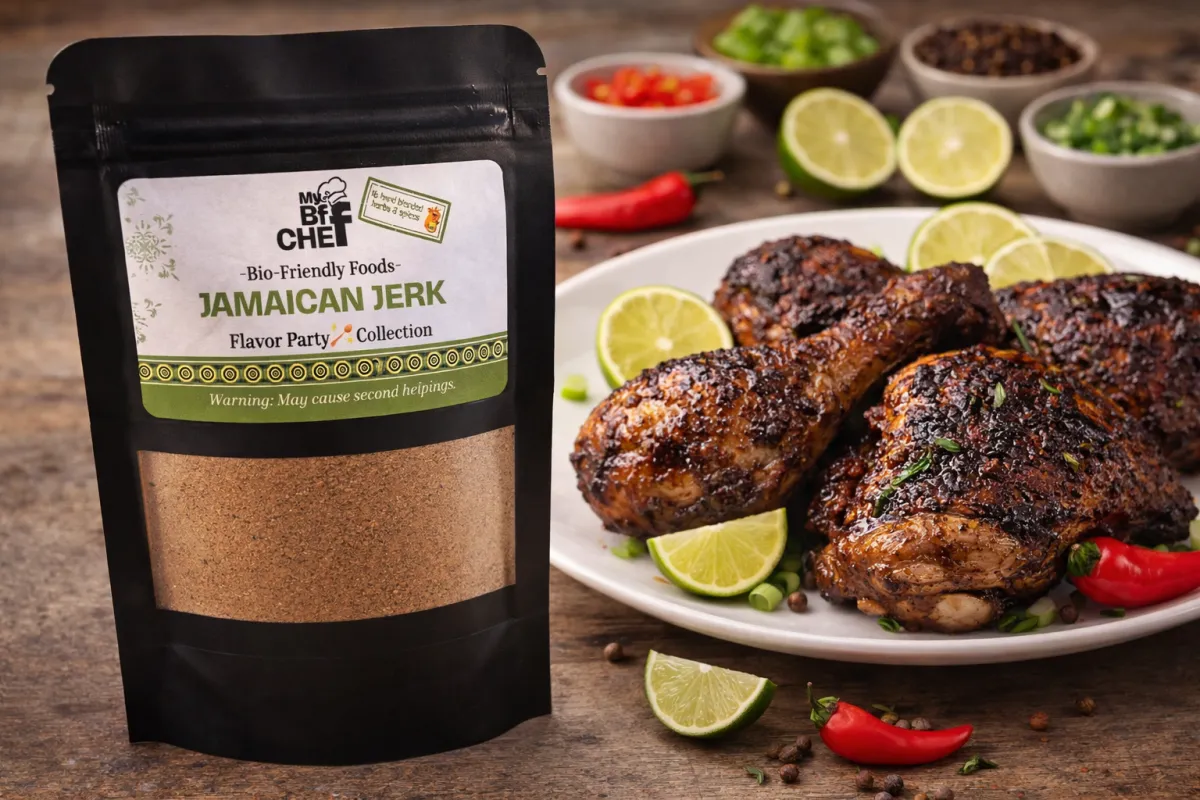 Turn up the flavor with the bold island taste of My BFF Chefs Jamaican Jerk Seasoning Blend. This vibrant seasoning combines warm spices with a touch of heat to create the classic jerk flavor loved throughout the Caribbean.