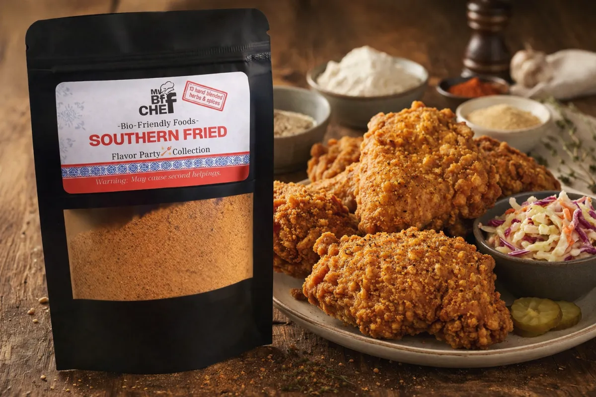 Bring the taste of classic comfort food to your kitchen with MyBFFChefs Southern Fried Blend. This perfectly seasoned mix delivers that crispy, savory flavor you know and love from traditional Southern cooking.