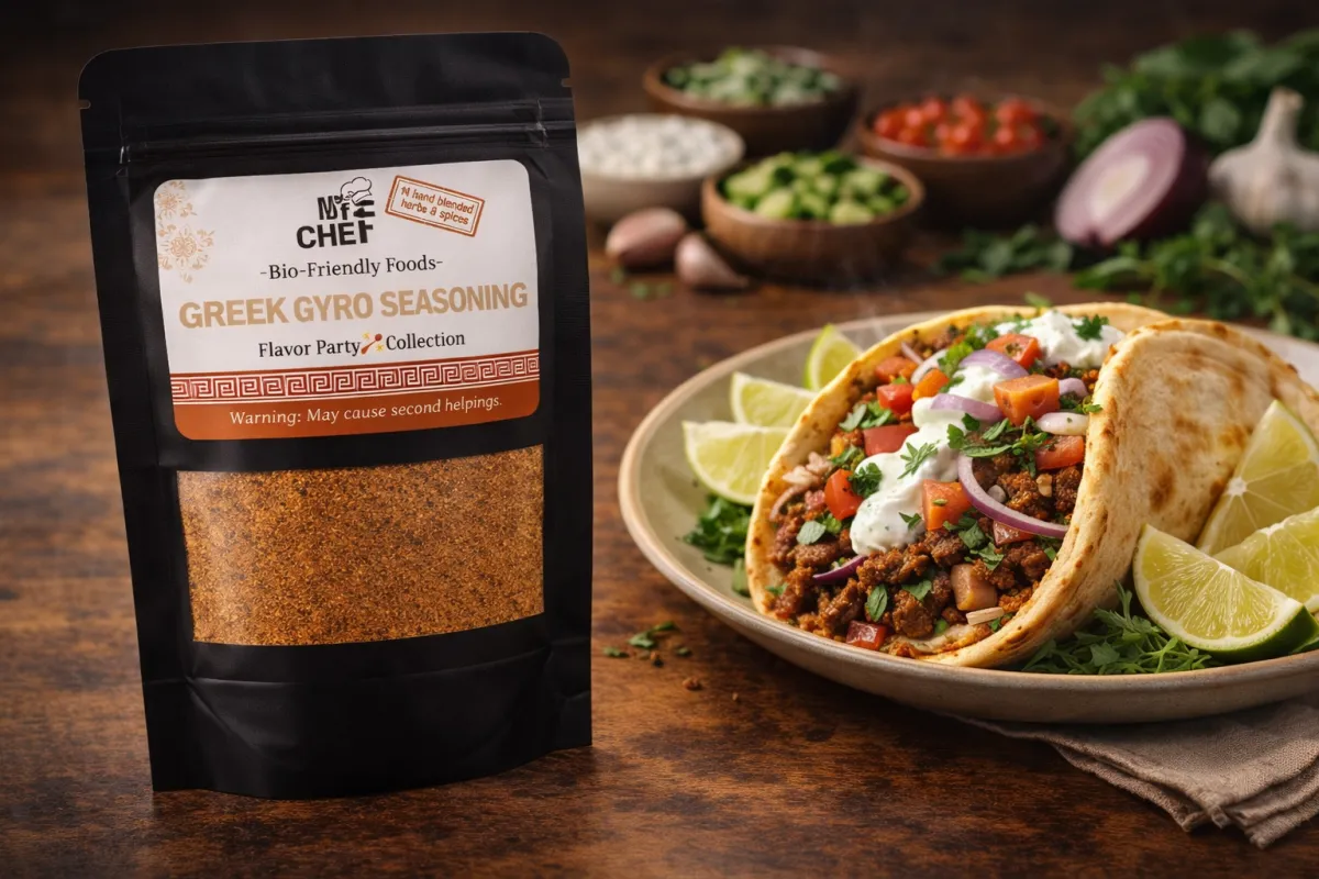 Bring the flavors of a Greek street market straight to your kitchen with My BFF Chefs Greek Gyro Seasoning Blend. This perfectly balanced blend of herbs and spices creates the classic savory flavor found in authentic gyros. Simply mix with ground lamb, beef, or chicken to make juicy gyro meat, or use it to season roasted vegetables, potatoes, and grilled meats.